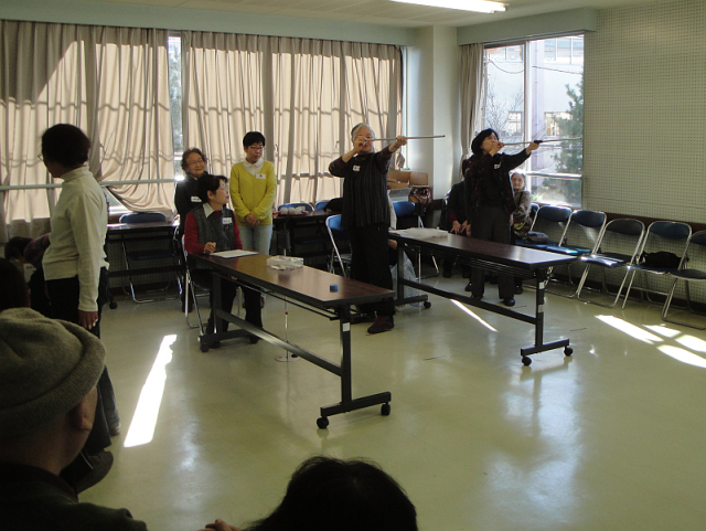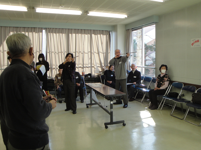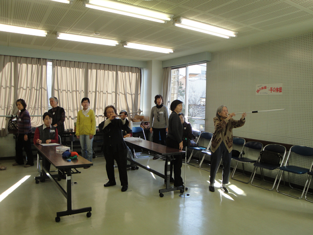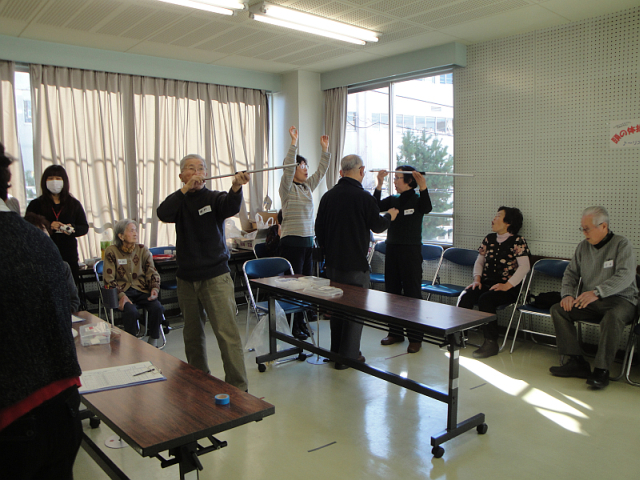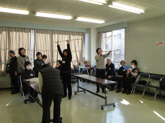 タオルを使って、のびのびストレッチしたり、軽やかな音楽に乗って、身体のいろいろな部位を動かしました。椅子に座ったり立ち上がったりして、ゆったり軽やかな体操ですが、やってみるとかなりの運動量。いい汗をかきました。